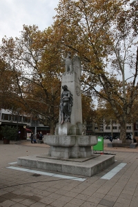 Tiefen des Rheines entdeckt. Seither ziert sie das Kriegerdenkmal auf dem Kehler Marktplatz. Stele mit