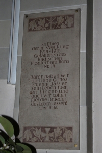 Zu Ehren der im Weltkrieg 1914 - 1918 Gefallenen des Badischen Pionierbataillons Nr. 14