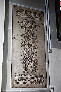 Schmerzhafte Mutter Gottes erbitte unseren im Weltkrieg 1914-18 gestorbenen Söhnen das ewige Leben. (Namen) Zum ehrenden Gedächtnis und in Dankbarkeit gewidmet von der kathol. Kirchengemeinde Kehl.