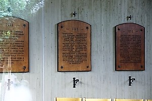 Gedenktafeln in der Abdankungshalle.