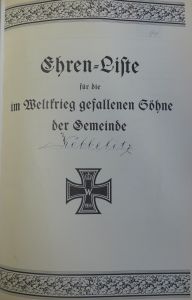 an der Rückseite ist zum Glück erhalten. Die Ehrenlisten für die Gefallenen des 1. Weltkriegs mussten die