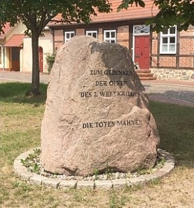 Krakow am See (2. Weltkrieg), Landkreis Rostock, Mecklenburg-VorpommernPLZ 18292 An der Goetheallee steht ein Mahnmal für die Opfer des zweiten Weltkrieges. Ein Findling mit Inschrift (ohne Namen).
