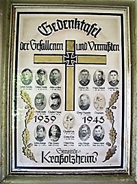 Denkmal: Gedenktafel der Gefallenen und Vermißten 1939 - 1945 Gemeinde Kraßolzheim