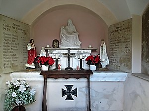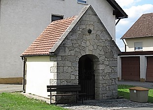Kleine Kriegsgedächtniskapelle mit Gedenktafeln für beide Weltkriege zu beiden Seiten des Altars. Die Gefallenen und Vermissten des 1. Weltkriegs sind auch auf dem Denkmal in Neuhaus an der Pegnitz verzeichnet (separater Beitrag; Daten in Einzelfällen etwas unterschiedlich).