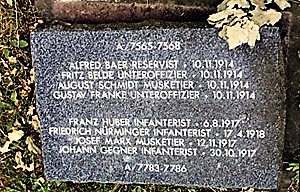 Grabstein auf dem Deutschen Soldatenfriedhof für acht Gefallene des 1. Weltkriegs