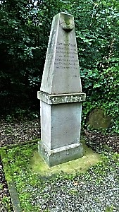 Obelisk Jäger Betz: Hier ruht in Gott Carl Batz Soldat im kgl. bayr. 6t. Jäger Bataillon Er starb den Heldentod am 6.August 1870 Errichtet zum Andenken von seinen … (nicht lesbar)