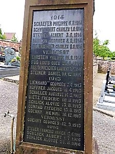 Der Obelisk wurde für die im Lazarett Lembach verstorbenen Soldaten des Krieges 1870/71 errichtet und oben ein Ehrenkranz mit EK eingelassen. Die sechs französischen, drei deutschen und ein algerischer Soldat ruhen unter diesem Denkmal. Im Ersten Weltkrieg wurden daran zwei Tafeln mit den Namen der im 1. Weltkrieg gefallenen Einwohner angebracht. Als Lembach nach 1918 wieder an Frankreich fiel wurde das EK entfernt und noch eine Widmung in Französisch angebracht.