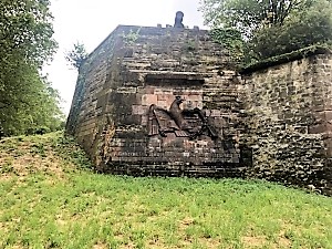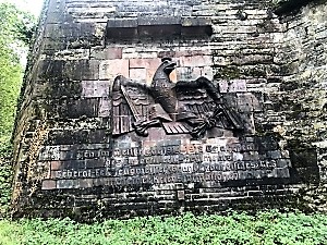 Mainz (Fort Josef), Rheinland-PfalzPLZ 55128 Wandplakette für das Fußartillerie Regiment Nr.3 an der Festungsmauer von Fort Josef am Czernyweg mit Preußischem Adler und Inschrift