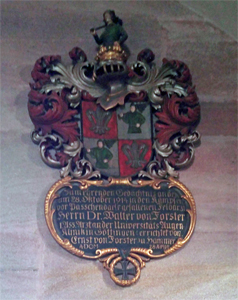 Zum ehrenden Gedenken an den am 28. Oktober 1914 in den Kämpfen vor Passchendaele gefallenen Feldarzt Herrn Dr. Walter von Forster 1. Ass. Arzt an der Universitäts Augen- klinik in Göttingen, errichtet von Ernst von Forster zu Hammer A.DOM 28.X.1919