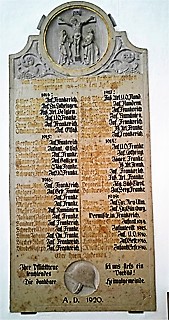 Kirche: Von Monheims tapferen Kriegern starben im großen Völkerringen 1914 – 1918 den Heldentod: (Namen)