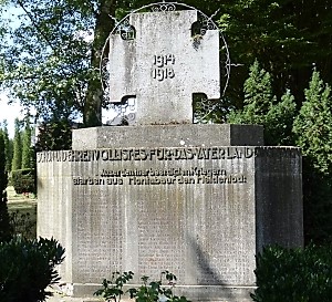 Denkmal 1. Weltkrieg: 1914-1918 Schön und ehrenvoll ist es für das Vaterland zu sterben Ausser den hier beerdigten Kriegern starben aus Montabaur den Heldentod (Namen)