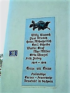 Neustadt in Sachsen (Feuerwehr), Landkreis Sächsische Schweiz-Osterzgebirge, SachsenPLZ 01841 An der Wand der alten Feuerwache (Struvestraße 10) befindet sich eine Gedenktafel.