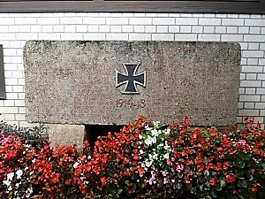 Toten des Zweiten Weltkriegs und ein aufgebockter separater Steinblock mit einer Auflistung