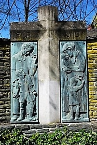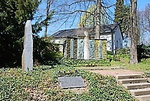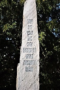 mit Widmung für den 2. Weltkrieg. Links davon steht eine schmale 2 m hohe Stele