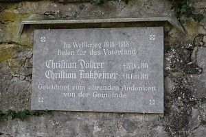 Im Weltkrieg 1914 - 1918 fielen für das Vaterland (Namen) Gewidmet zum ehrenden Andenken von der Gemeinde