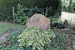 Im Friedhof; Gedenktafel an der Friedhofsmauer, sowie ein Kriegsgrab