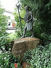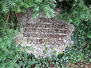 Prien a.Chiemsee (Rübezahl), Landkreis Rosenheim, Oberbayern, BayernPLZ 83209 Die Erinnerungsstätte am Rande einer kleinen Grünanlage am Wendelsteinplatz besteht aus drei beschrifteten Findlingen. Auf dem linken Stein steht eine Plastik von Rübezahl, des Berggeistes des Riesengebirges.