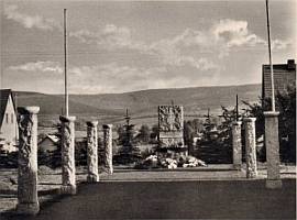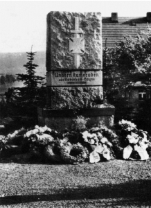 Rund 100 m links neben der Feuerwehr, gegenüber dem Sportplatz, lagern die Teile des Gefallenendenkmals von Rabishau. Die Namen der Gefallenen stammen aus der Chronik von Rabishau; Verfasser Ullrich Junker.