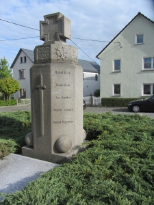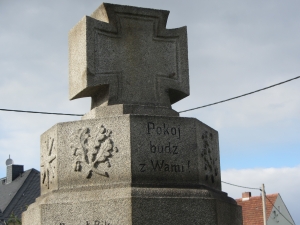 Das Denkmal zum Gedenken der Gefallenen des 1. Weltkrieges in der Ortsmitte wurde im Jahre 1922 errichtet. Die Aufschrift sowie die Namen sind komplett in obersorbischer Sprache verzeichnet. Im Jahre 1994 wurde am Fuße des Denkmals eine steinerne Tafel zum Gedenken an die Gefallenen des 2. Weltkrieges angebracht. Die Aufschrift sowie die Namen auf dieser Tafel sind in deutscher Sprache. Einige der diakritischen Zeichen der sorbischen Buchstaben sowie der deutschen Umlaute sind im Verlauf der Jahre verwittert und wurden daher nach bestem Wissen ergänzt.