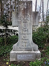 Ein Steinkreuz, das von seinem ursprünglichen Standort auf den Friedhof verlegt wurde, erinnert an zwei Soldaten, die beim Einmarsch der Amerikaner gefallen sind.