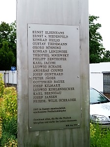 Rastatt (Badner Halle: Freiheitskämpfer), Landkreis Rastatt, Baden-WürttembergPLZ 76437 Das moderne Denkmal vor der Badner Halle wurde 150 Jahre nach der Niederschlagung der Badischen Revolution von dem Rastatt Künstler Michael Wollensack geschaffen. Es dient der Erinnerung an die Menschen, die in der Vergangenheit für die freiheitlich demokratische Grundordnung kämpften, wie es sie heute in Deutschland gibt. Die drei Grundelemente des Denkmals sind eine Mauer als Symbol für Gewalt, Unterdrückung und Trennung, eine Feder als Zeichen des geschriebenen Wortes, die ebendiese Mauer aufbricht, und 48 Kugeln als Erinnerung an die revolutionären Vorgänge 1848/49.