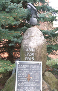 In den Kirchenbücher der Zeit von 1813-1871 befindet sich eine extra angelegte Seite zum Krieg 1813-1815 mit dem Namen eines Gefallenen. Denkmal aus aufgetürmten Feldsteinen für die Gefallenen des 1. Weltkriegs, mit zusätzlich angebrachter Tafel für die Gefallenen des 2. Weltkriegs, gekrönt von einem Adler.