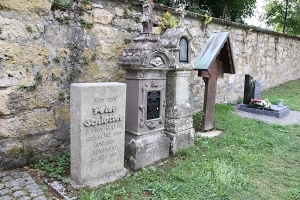 Im Friedhof Kriegsgräber neben der Gedenkkapelle und Hinweise zu Soldaten von privaten Gedenksteinen.