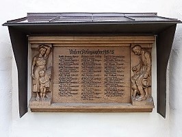 Geschnitzte Holztafel mit Relief von 1923 für die Gefallenen des 1. Weltkriegs an der