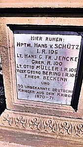 Hier ruhen: (Namen) und 30 unbekannte Deutsche Krieger aus dem Kriege 1870-71