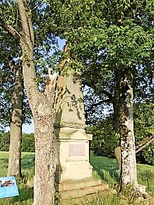 Das Denkmal hatte früher eine andere Inschrift und an den Seiten befanden sich Namenstafeln. Diese sind heute verschwunden. Die Inschriften auf den zwei Offiziersgräbern sind teilweise verwittert. Dazwischen befinden sich zwei Metallkreuze mit der Inschrift „14. Aug. 1870“ unter denen wahrscheinlich weitere Gefallene bestattet sind.