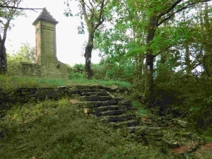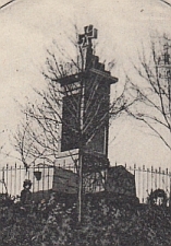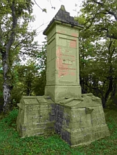 Denkmal für die gefallenen Angehörigen des Infanterie Regiments Nr. 67 im Kriege 1870/71 östlich von Gravelotte. Stele mit Inschriften und krönendem EK die aus vier Sarkophagen am Fuße aufragt (EK heute verschwunden).