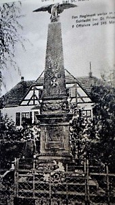 Denkmal des Garde-Füsilier-Regiments im Kriege 1870/71. Obelisk mit krönendem Adler (nach 1918 abgerissen) Das Regiment verlor in der Schlacht von St. Privat 6 Offiziere, 343 Mann.
