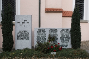 Denkmal bei der Kirche. Zusätzlich Hinweise zu Soldaten von privaten Gedenksteinen.