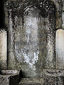 Stele auf Bergfriedhof in Schässburg Aus Sandstein, z.T. schon verwittert Grabstein Einzelgrab