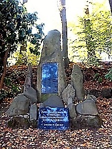 erhöht an einem Hang das Denkmal. Es besteht aus einem großen ca. 2 m