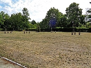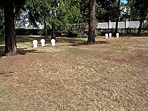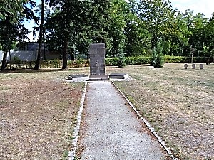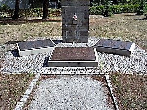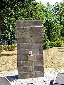Auf dem Ostfriedhof eine weitläufige Gedenkanlage mit einzelner Säule für Gefallene des 2. Welkriegs.