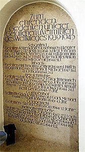 Gedenktafel für den 2. Weltkrieg in der Kirche. Die Gefallenen und Vermissten sind zum Teil auch in Schlicht verzeichnet (separater Beitrag).
