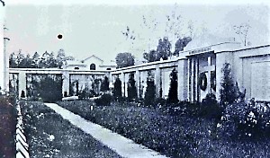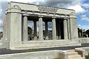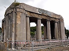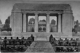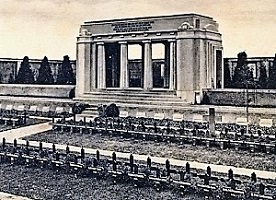 Denkmal in Form eines antiken Tempels auf der ehemaligen deutschen Kriegsgräberstätte des 1. Weltkriegs auf dem Friedhof St. Charles in Sedan.