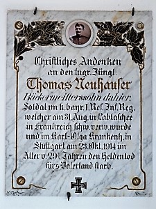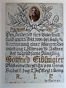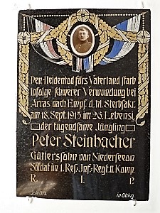 Im 26.Lebensjahr, inf. Verwundung (li. Schulterblatt), Gütlerssohn von Niederseeon Dienstknecht, ledig, w. Stettling, Kriegsgräberstätte Neuville-St. Vaast, Frankreich, Block 17, Grab 888