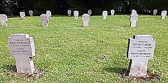 Kleine deutsche Kriegsgräberstätte des 2. Weltkriegs am Nordausgang von Spichern auf den Spicherer Höhen.