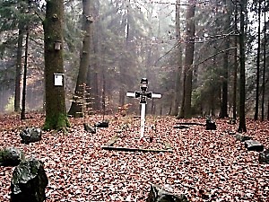 Im Wald von Steimel ein angedeutetes Grab an der Absturzstelle des Feldwebels