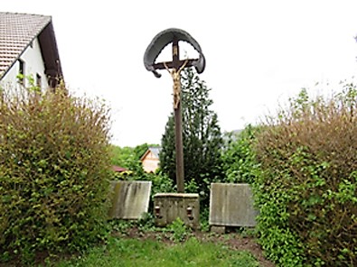 Bei der Filialkirche St. Martin steht das alte, sehr verwitterte Denkmal. Einige