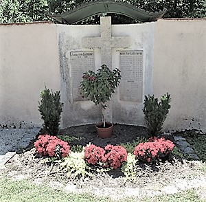 Gedenktafeln an der Aussegnungshalle für beide Weltkriege. Die Gefallenen des 2. Weltkriegs sind auch auf einer Holztafel in der Kirche verzeichnet. Zusätzliche Informationen von Einzelgedenken auf Privatgräbern.