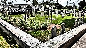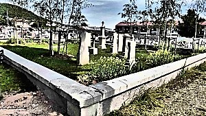 Deutsche Kriegsgräberstätte des Krieges 1870/71. Viereck von einer flachen Mauer umrandet. Kleine und große alte Grabsteine (viele verwittert) sowie zwei moderne Namenstafeln mit sehr vielen Namen, ohne Daten