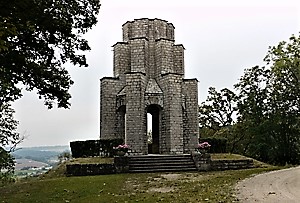 Treuchtlingen (Schlossberg), Landkreis Weißenburg-Gunzenhausen, Mittelfranken, BayernPLZ 91757 Kriegerdenkmal ohne Namen für beide Weltkriege auf dem Schlossberg aus dem Jahr 1927.