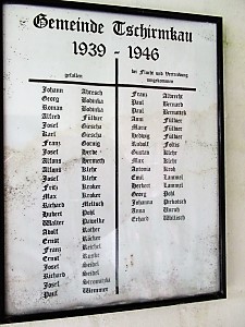 1939 - † - 1946 Zum Gedenken an unsere Gefallenen und bei Flucht und Vertreibung ums Leben gekommenen Bewohner der Gemeinde Tschirmkau, Kreis Leobschütz Oberschlesien