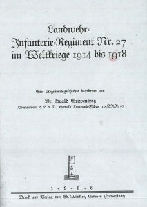 Das Landwehr-Infanterie-Regiment Nr. 27 im Weltkriege 1914 bis 1918 – eine Regimentsgeschichte