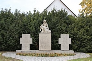 Bei der Kirche; in der Mitte Steinblock, oben mit Steinrelief "Maria mit verstorbenen Jesus", seitlich je