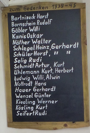Die vierte Tafel mit den Namen aus dem Zweiten Weltkrieg sieht sehr provisorisch aus;