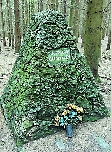 Kleine Denkmäler am Hirtzstein Berg aus den Kämpfen um den Hartmannsweilerkopf im 1. Weltkrieg: Gedenk-Pyramide für Gefallene. Gedenkstein für Ulanen-Regiment Nr. 15 Grabstein L.I.R. 56
